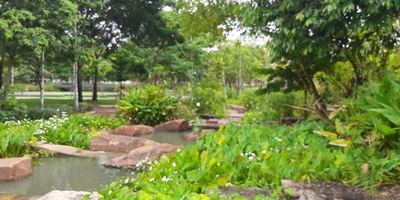 This collaboration between the university and Voraakhom was birthed to celebrate the school’s 100th birthday. Voraakhom’s landscape firm won the contract in a contest against steep competition. The University’s symbol, the Raintree became a huge inspiration for the park. It has an expansive root system and large overarching branches that create shade, allow biodiversity and absorb many gallons of water. These attributes were brought into the construction of the park.