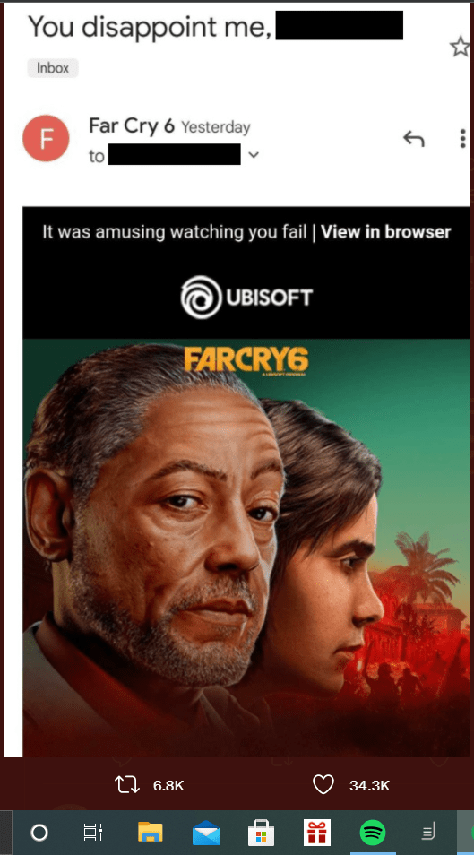 Ubisoft is not known to be an ear-to-the-ground company. The French video game developer and publisher has made many anti-consumer moves in recent years. This most recent blunder brings us back to the early 2000’s email spam. With their newest game release Far Cry 6, players who have started the game but haven’t played recently are being sent emails belittling them for not spending enough time in-game.